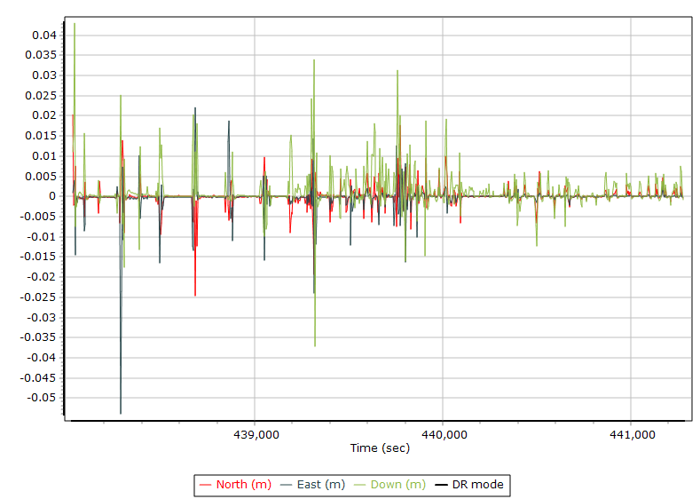 良い区間は、3成分(North/East/Down)が全体として小さく、目立つ異常が少ない状態になります。